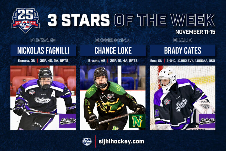 The Superior International Junior Hockey League (SIJHL) has named its Three Stars for week 11 of regular season play: