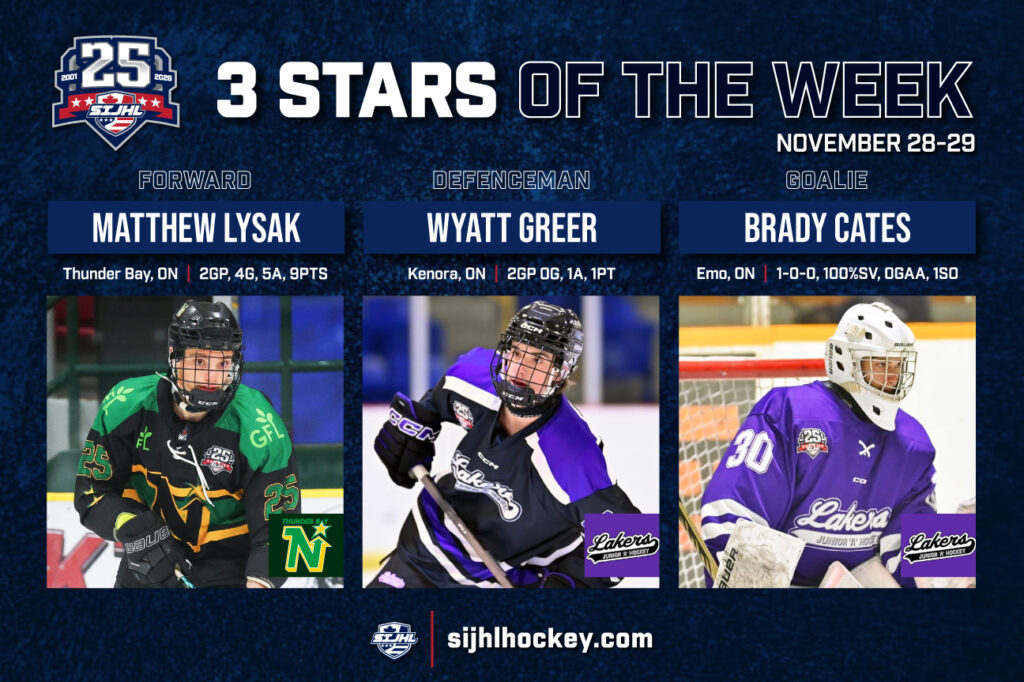 The Superior International Junior Hockey League (SIJHL) has named its Three Stars for week 11 of regular season play: